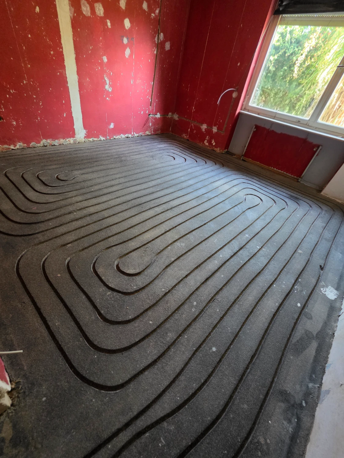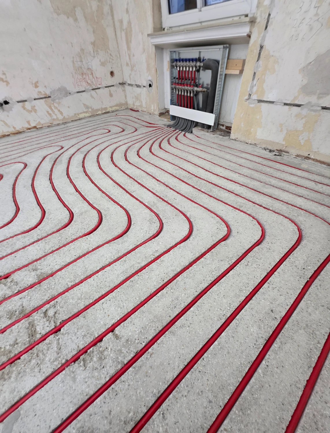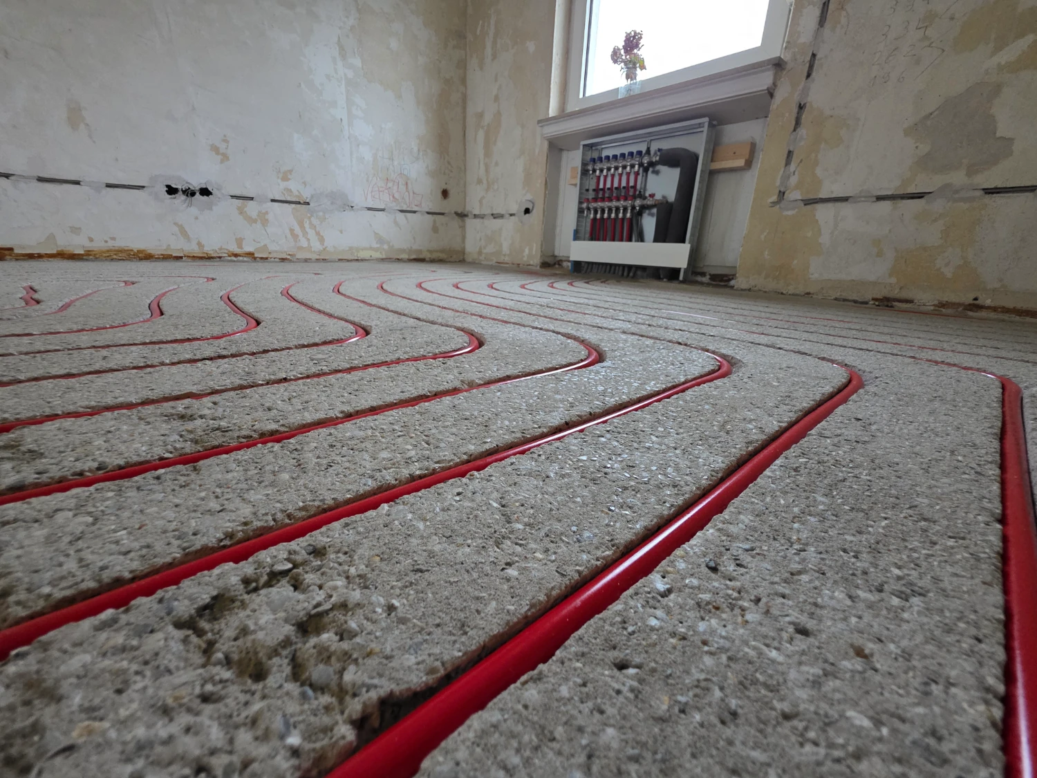 Sehr professionelle, schnelle und saubere Arbeit (ca.150qm Fußbodenheizung nachgerüstet inkl. Kanäle fräsen, Rohre verlegen, Verteilerkästen installieren, Ausgleichsmasse gießen).
